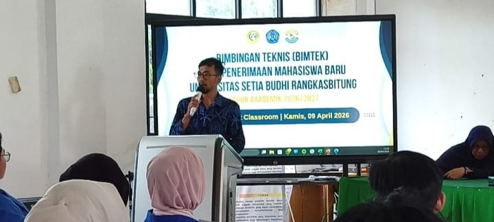 Rangkasbitung – Dalam rangka meningkatkan efektivitas promosi dan penerimaan mahasiswa baru, Panitia Penerimaan Mahasiswa Baru (PMB) Universitas Setia Budhi Rangkasbitung (USBR) menyelenggarakan kegiatan Bimbingan Teknis (Bimtek) Duta PMB Tahun 2026. Kegiatan ini menjadi langkah strategis dalam mempersiapkan para duta sebagai representasi kampus yang komunikatif, profesional, dan berdaya saing, Kamis (09/04/2026).