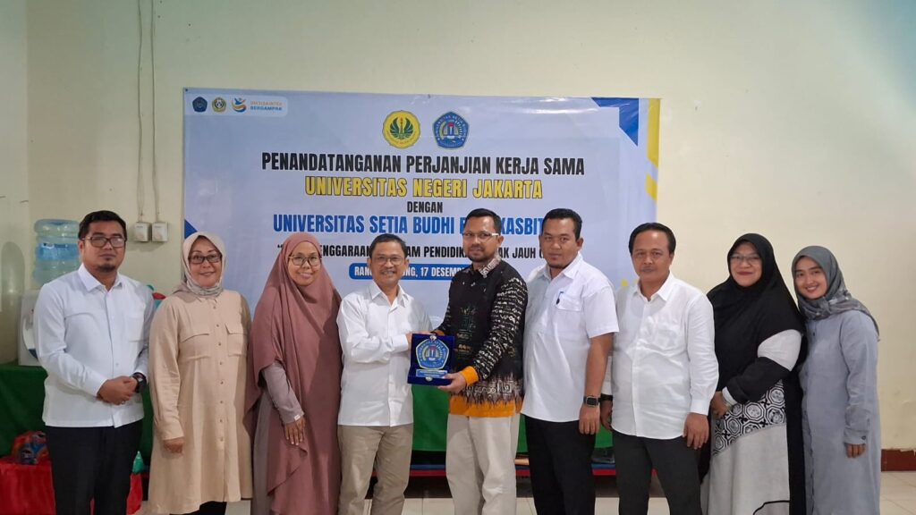 Rangkasbitung – Universitas Negeri Jakarta (UNJ) dan Universitas Setia Budhi Rangkasbitung (USBR) secara resmi menandatangani Perjanjian Kerja Sama (PKS) dalam rangka penyelenggaraan program pendidikan melalui Pendidikan Jarak Jauh (PJJ). Penandatanganan kerja sama ini menjadi langkah strategis dalam memperkuat kolaborasi antarperguruan tinggi di tengah perkembangan pendidikan di era globalisasi, (Rabu) 17/12/2025.
